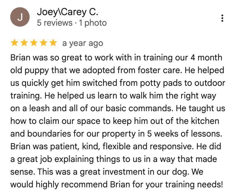 🐾 Next-Step Training Recommendations If we’re the right fit, you’ll know exactly what comes next to turn your dog into the well-behaved pet you’ve always wanted.